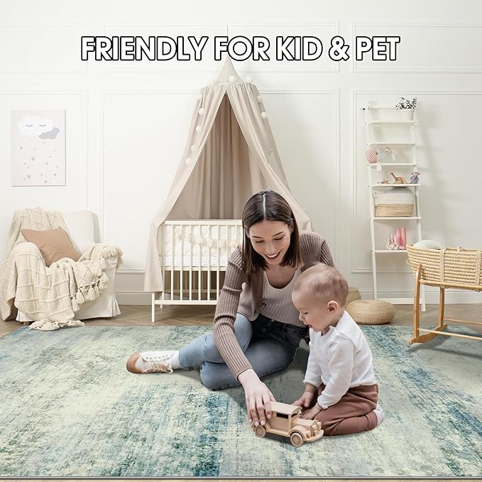 - 【Safety Non-Slip Rug】Area rugs 9x12 are designed with a specialized upgrade TPE backing, the non-slip bottom is made well and does a relatively good job of keeping the rug in place, preventing any accidents slips, trips, and falls, suitable for high-traffic areas or homes with children, elderly individuals, or pets.