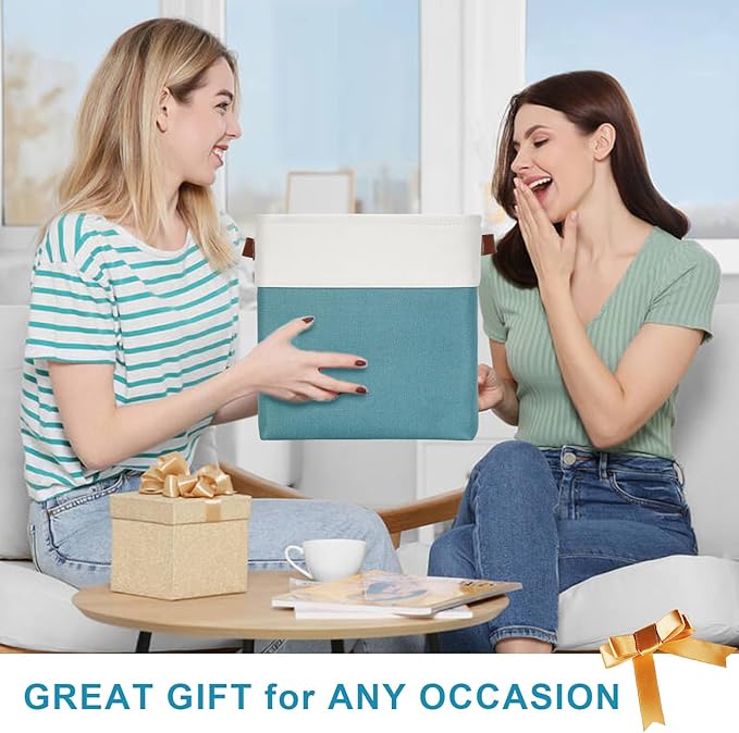 Collapsible Fabric Storage Cubes 11x11 Cube Storage Bins, 4 Pack Closet Baskets Box with Handles for Organizing, Shelf, Toys, Clothes, Home, Office, Nursery (Teal&White)