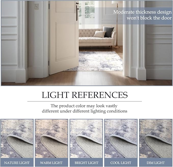 - Thin Design & Folding Packaging: this rugs with moderate thickness not only decor your home, soft on touch but also can be easily placed behind doors and under furniture. The sweeping robot can move around to clean the area rug. The thin design also makes it convenient for you to put the rugs into the washing machine for cleaning and easy to store.
