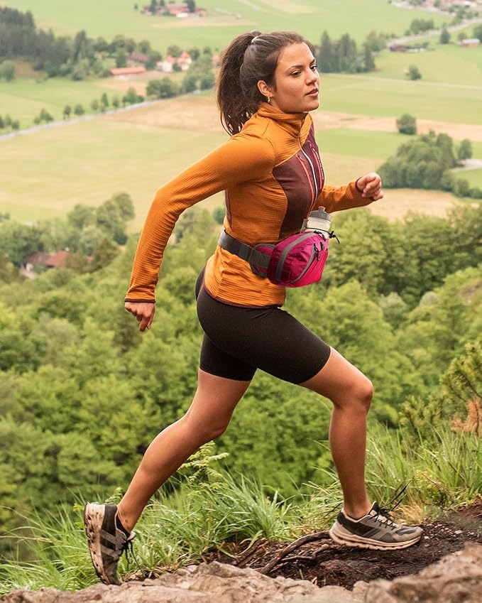 WATERFLY Fanny Pack Waist Bag: Hiking Water Bottle Holder with Strap Waist Pack for Women Men Hydration Hip Packs for Running Walking Traveling-Rose Red