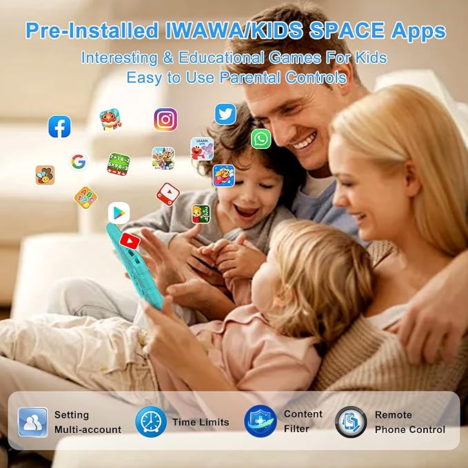 - 【Pre-Installed Parental Control & Educational Game】Z138 Kids Tablet is pre-installed with iwawa APP & Kids Space, which includes Montessori, Brain Training and other educational games for children over 2+ years old, so kids can learn and grow in a happy way,and age filtering ensures that kids of different ages only see filtered content. The easy-to-use Parental Control & Remote monitoring ensures always providing your kids a safe and clean online environment for having fun, no need to constant supervision. Anti-blue light, eye protection mode and blackout mode can reduced the screen flicker and the damage to the eyes caused by irritating blue light, maximize to protect children's vision.