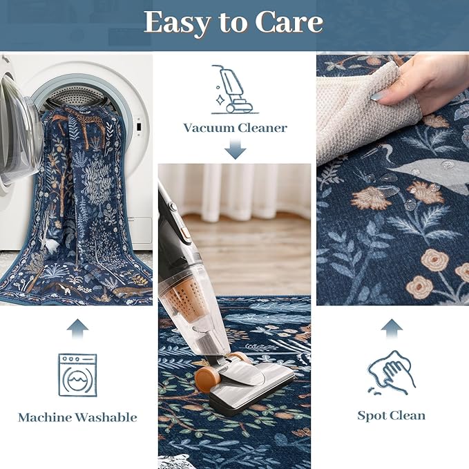- Non-Slip & Ultra-Thin: The skid-resistant TPE backing can keep the rugs in place effectively, suitable for households with children, pets, or messy hobbies. This rug is ultra-thin, allowing it to be easily placed under furniture