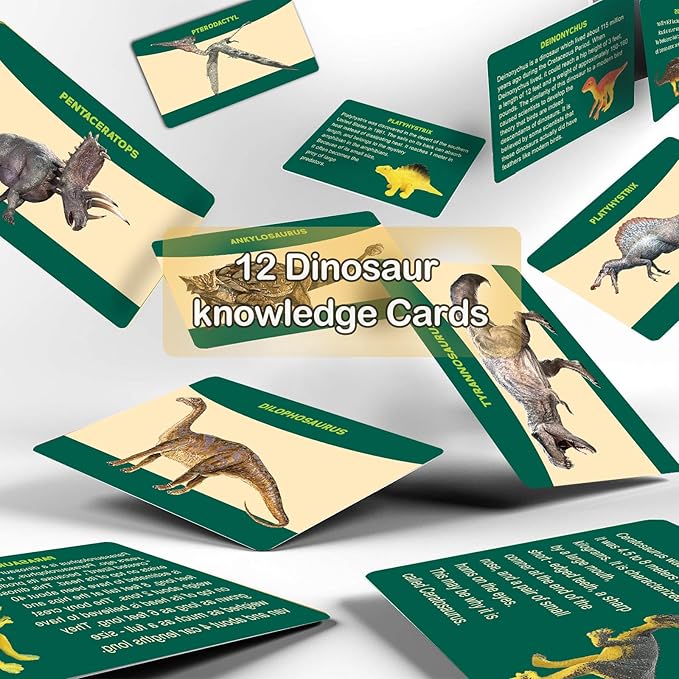 - 【 12 Dinosaur Knowledge Cards 】 Match up the appropriate cards and learn facts and history about the dinosaurs, then share fascinating stories about different dinosaurs with parents or friend. Fun and educational science kits for kids age 3-5 4-6 5-7 6-8 9+ 8-13. It fosters a love for science and paleontology in a fun and exciting way.