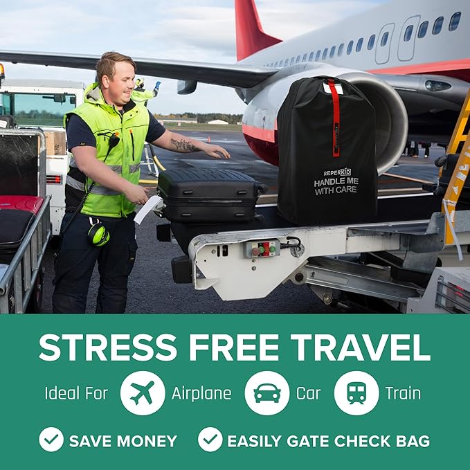 reperkid Medium Stroller Bag for Airplane Travel, Black & Red, 42" H x26 W x13 D, Fits Most Single Strollers Incl. Jogging & Standard Models – Premium Waterproof Cover, Adjustable Shoulder Straps