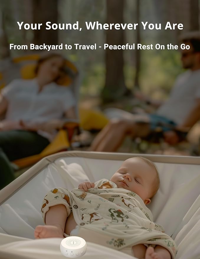 - Portable Sound Machine for Travel: Weighs only 2.88 oz; fits into pockets or bags; built-in fabric loop attaches to strollers, backpacks, or nightstands; compact design for bedrooms, nurseries, or travel sleep support