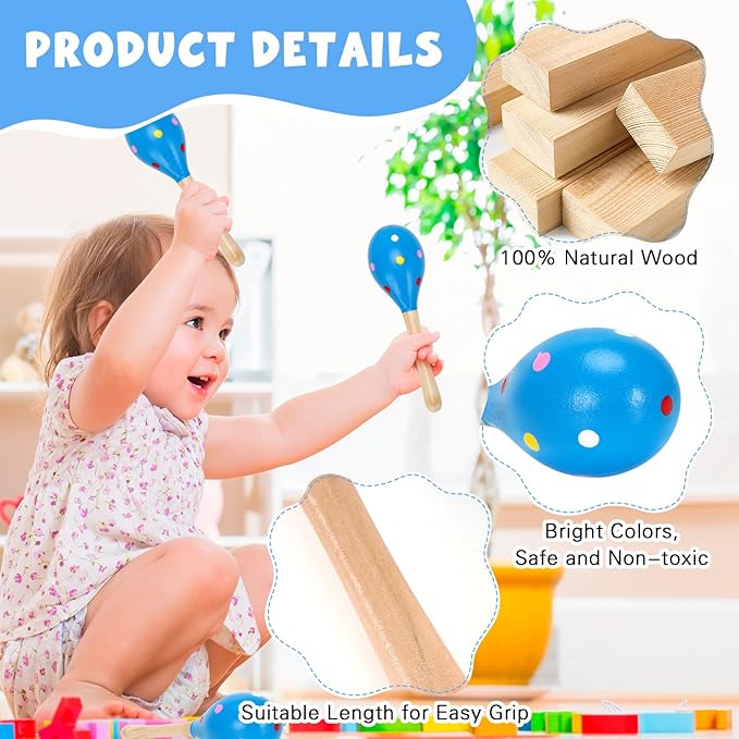 - High quality wooden materials: These maracas are made of 100% natural wood, which is not easily damaged, safe, non-toxic and durable; It will not cause harm to the human body and is the perfect choice for children to explore rhythm and music through play
