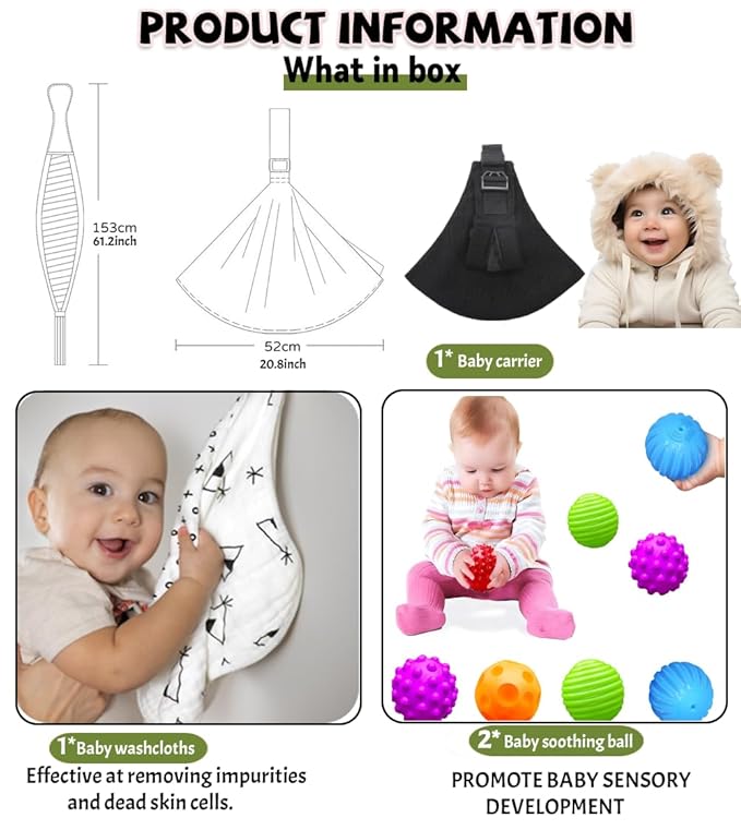 - 【What you get】 : 2 pcs different colors and shapes of toddler sensory ball, there are a variety of ways to play, colorful, more can attract the attention of the baby, 1pcs Baby Muslin Washcloths for Unisex 100% Cotton ,1pcs Convenient travel Baby Sling. is the holiday, Birthday, Thanksgiving and New Year's Christmas gift for your family and friends.