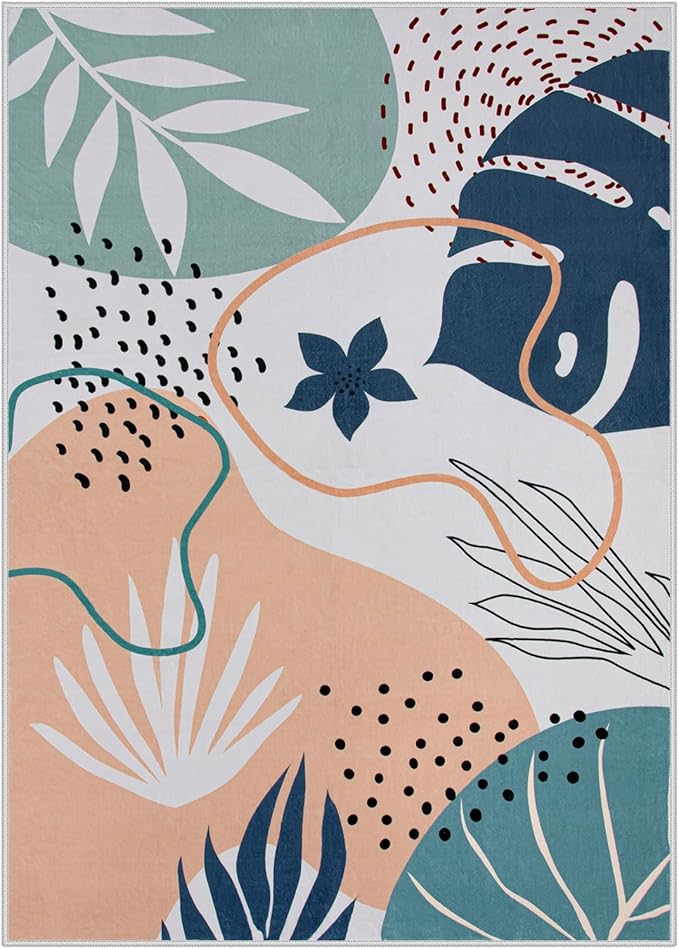 Lahome Washable Area Rug 5x7 - Non-Slip Soft Carpet for Bedroom Ultra-Thin Stain Resistant Rug for Living Room Throw Cute Kids Nursery Rug, Boho Botanical Print Indoor Rugs for Entryway Office