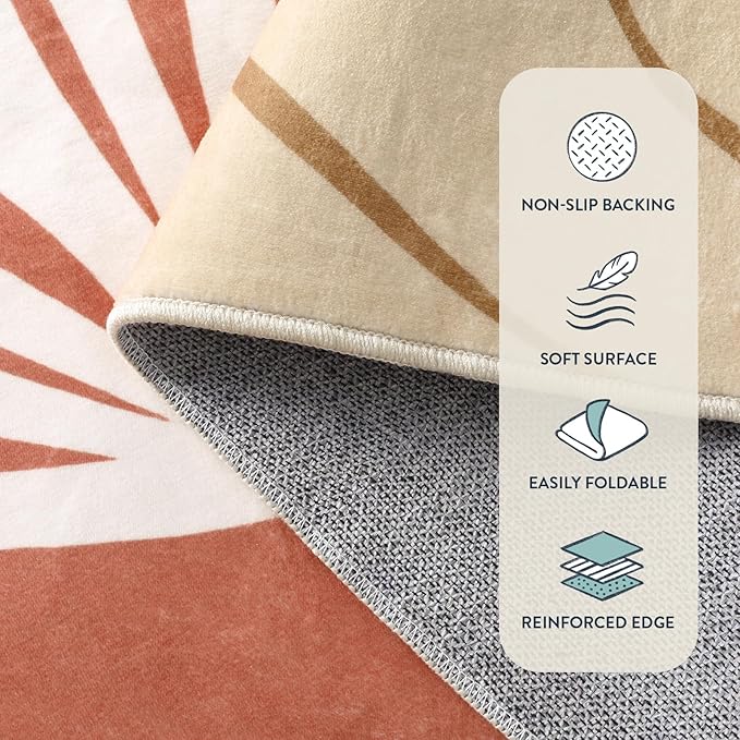 - Non-Slip Backing: This living room rug features TPR rubber backing to stay securely in place, preventing slips for kids and seniors. It also protects hardwood and laminate floors. Add a cushion pad underneath for extra comfort