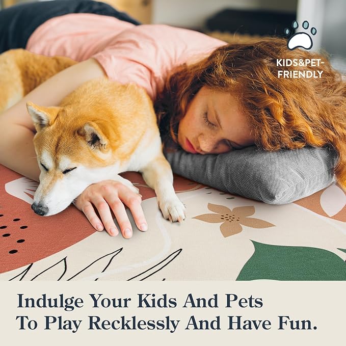 - Ultra-Thin Design: This botanical rug is only 0.22 inches thick. Non-traditional thick and stiff profile for easy cleaning and handling. Ideal for high-traffic areas, conveniently placed in bedrooms, living rooms, and underneath furniture