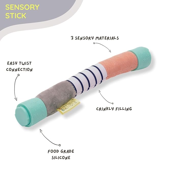 - Sensory Rod: This isn’t just any rod, this is the MVP of distraction; With three different textured fabrics and high-contrast black and white colors, it’s designed to captivate your baby’s attention; Bonus: when it’s not in action, the rod is ergonomically designed to fit perfectly into your baby’s hand, encouraging those fine motor skills