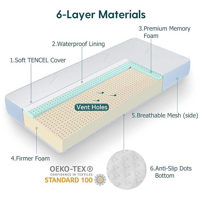 - 【DUAL-SIDED SLEEP MATTRESS】 Baby’s good sleep is closely related to a comfortable mattress. In order to better accompany baby’s growth, our toddler mattress adopts a double-sided sleep design. Age range: 0-8 years