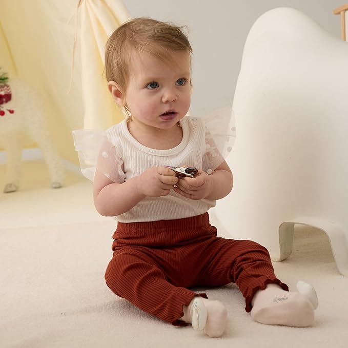 - Leggings For Baby Girls: pants for baby girl features an elastic waistband for easy to wear on and take off, solid color ribbed knit, ruffle pants, baby girl pants 18-24 months can be a great gift for your daughter, nieces or grandbaby, also for birthday party gift