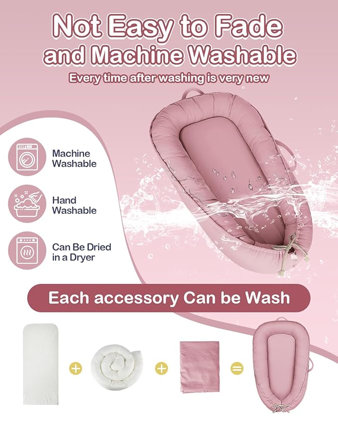 - π[π©πππππππππ ππππππ πππ πΊπππππ πππ πͺππππππ] The lounger features breathable cotton fabric as the cover, super soft and breathable polyester fiberfill for the bumper filling, and 3D breathable polyester for the mat filling. It adopts a bionic design to imitate mom's comfy womb, providing a comfortable and soothing environment for the baby. The baby lounger is approved by CPC and CPSIA. All of our newborn lounger covers are manufactured under strict supervision by a meticulous quality control team to ensure that the lounger covers meet all standards.