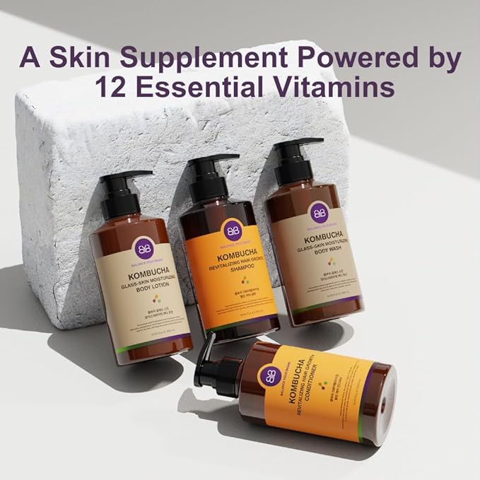 BALANCE YOUR BIOME Kombucha Glass-Skin Moisturizing Body Wash, K-Beauty,Fermented soybean, barley, Pear Juice, Pomegranates,12 Vitamins, Nurishing, Cleansing, 16.9 fl.oz.500ml, No Silicone
