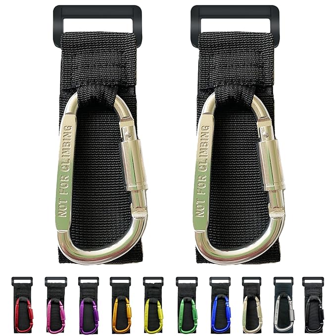 - 【Prevent Loss】: Our stroller carabiner clip for hanging are manufactured from nylon which will last for years to come. The most important thing is that our hooks with lock holds items securely and nothing will be lost