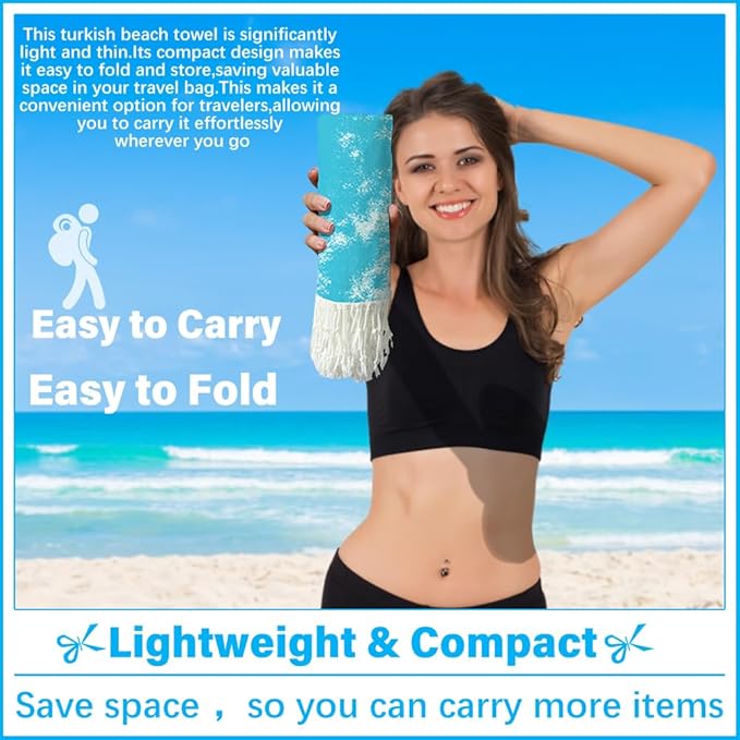 - LIGHTWEIGHT AND PORTABLE:Despite its large size,this turkish beach towel blanket is lightweight and thin,making it easy to fold and carry.Made from soft yet comfortable materials,it won’t weigh down your beach bag.Its compact design fits neatly into luggage or a backpack,perfect for travel and outdoor adventures