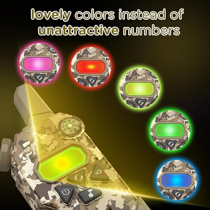 - Fun-filled Features for Kids:Our walkie talkies for kids are more than just communication devices. It comes with a built-in flashlight that can help kids navigate in the dark, a magnifying glass for curious little explorers to examine tiny details, and a compass to develop their sense of direction.