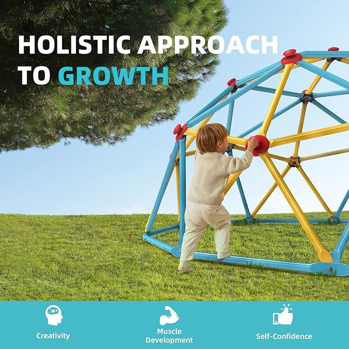 - Robust Construction: The geometric dome is crafted from thickened galvanized steel poles. The 1 in diameter poles exceed the standard market, supporting a load of 800 lbs. Rust-proof coating safeguard against scratches for kids.