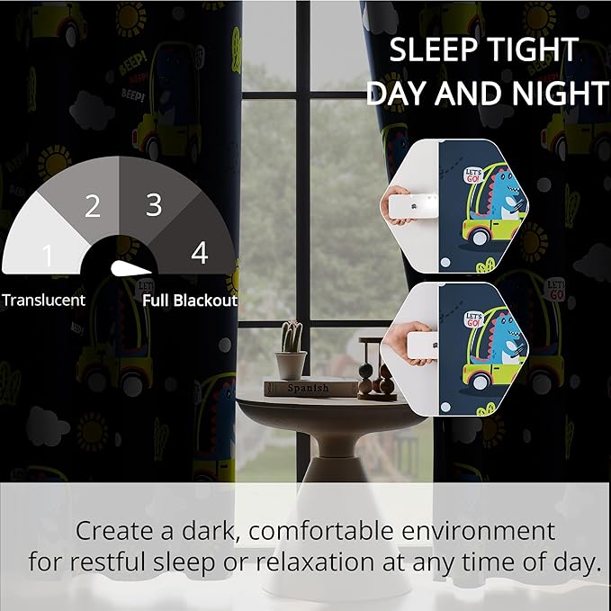 - Dinosaur Design: Our blackout curtains feature a playful dinosaur pattern that sparks imagination and adds a touch of adventure to any child's room. Perfect for nurseries, bedrooms, and playrooms, these curtains create a fun and vibrant atmosphere.