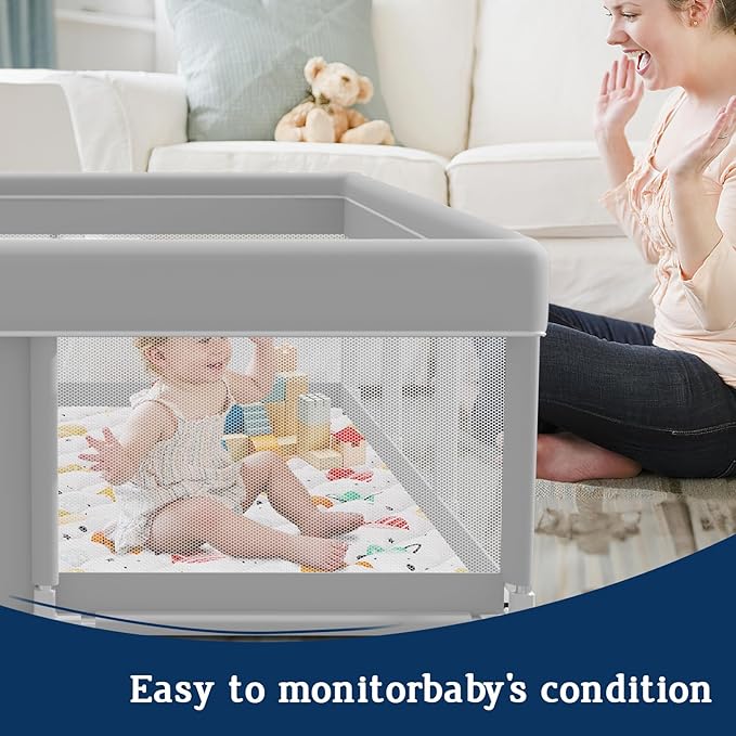 - 【FREE YOUR HANDS】With Jaobeem baby playpen with mat, It can help you limit your baby crawl and play in a safe area. Thus you can have a little spare time on relaxing, cooking, housework, or just free hands, while don't have to worry about them escaping and causing havoc.
