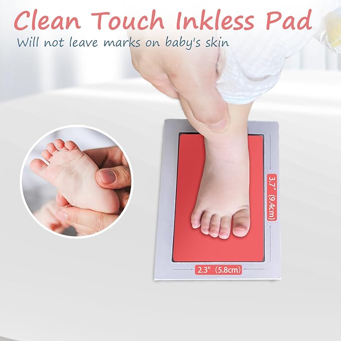 - [Perfect Gifts]: This baby ink hand and footprint kit measures 5.0"x3.2" and has an ink window of 3.7"x2.3".Ideal for newborn baby hand and footprint, use the baby inkless ink pad, you will have personalized baby footprint keepsake, it's not only for baby shower gifts but also for pet birthday gifts.