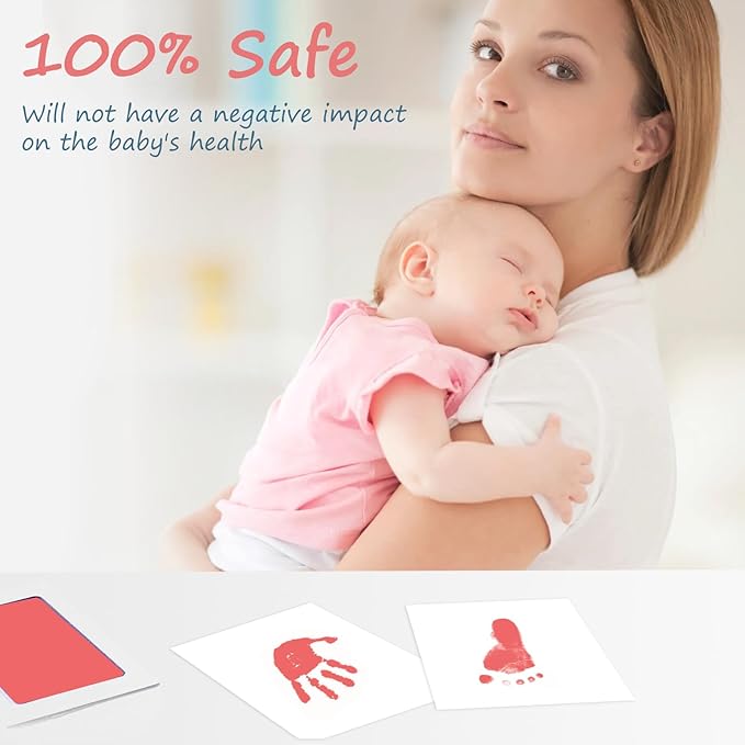 - [Safe Ink Pad]:This clean touch ink pad will not leave ink residue on baby foot. The baby footprint kit is 100% safe for your baby hands feet. New parents can safely use this baby handprint kit to print the baby handprint and footprint ,leave personalized newborn keepsake.