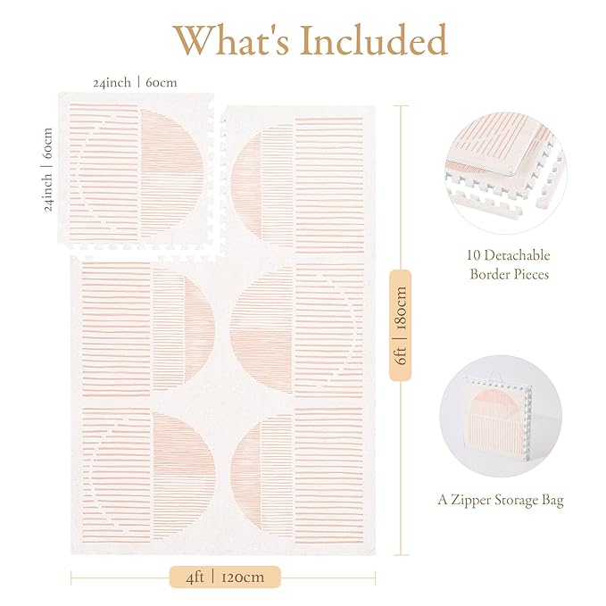 - 【Enhanced Specifications】Include 6 interlocking 24x24x1 inches tiles & 10 border pieces. Each 1-inch thick tile weighs 800g, offering stability and security. The mats cover a large surface area, making them perfect for any playroom or nursery. They are ideal for high-traffic areas, providing a robust and reliable play surface for your children. To maximize both the aesthetics and functionality of your play mat, choose a size configuration that covers the entire room/space.