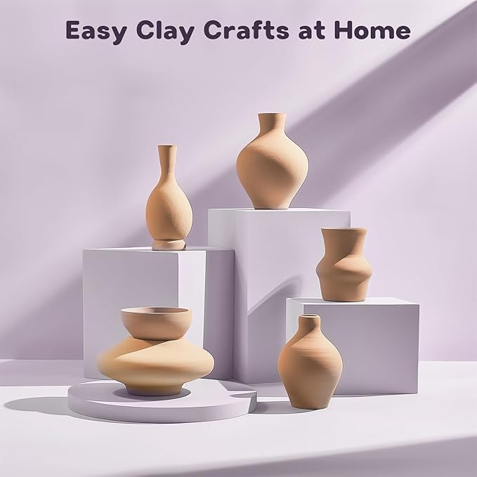 - Complete Pottery Kit: This kit includes a pottery wheel, power adapter, 8 sculpting tools, 2 paint brushes, 3 packs of air-dry clay, and 12 vibrant paints. Ideal for beginners starting their pottery adventure