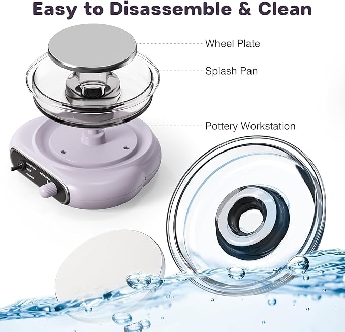 - Compact & Easy to Clean: Lightweight and compact, this pottery wheel is easy to store and use. The removable wheel plate and splash pan simplify cleaning, ensuring a smooth experience after each creative session