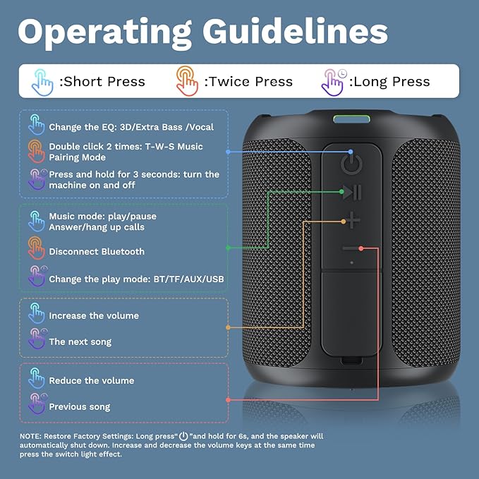- [Rugged & Waterproof] Built for the outdoors, this speaker boasts a tough, shockproof design and an IPX7 rating, providing full protection against water immersion and harsh environments. Whether you're hosting a party, relaxing by the pool, hitting the beach, or embarking on a camping adventure, this speaker is ready to deliver exceptional sound no matter where you go.