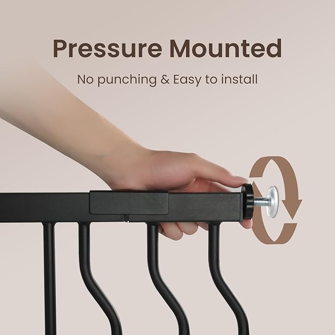 owlie 37.4" Extra Tall Wide Baby Gate for Stairs Doorways,29-52 Inch Extra Large Long Baby Gate with Door Indoor Safety Metal Pressure Mounted Pet Gate with Walk-Thru Auto Close, Black