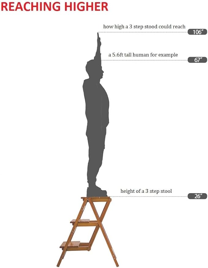 - ②SPACE SAVING - This portable stool’s space-saving design lets you fold the ladder to a compact size for storage. The foldable stool only 3.5 inches (9cm) thick once folded and can be stored in any corner. this step ladder is convenient storage in very narrow places