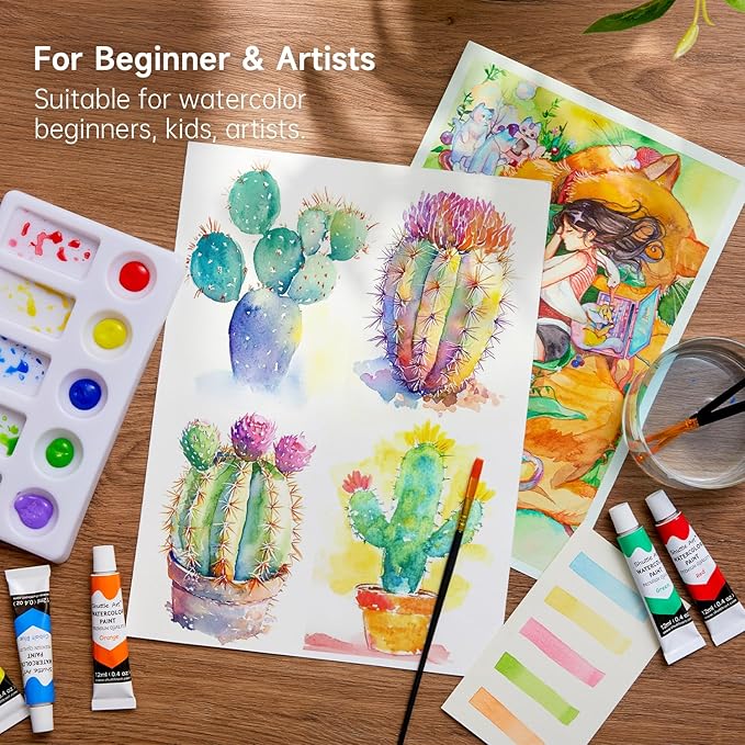 - 15 VIBRANT COLORS: Shuttle Art 15 colors (12ml each) highly pigmented watercolor paints perform excellent on papers, featuring high saturation, good transparency and diffusivity, and can be easily applied by artists, enthusiast, beginners and kids