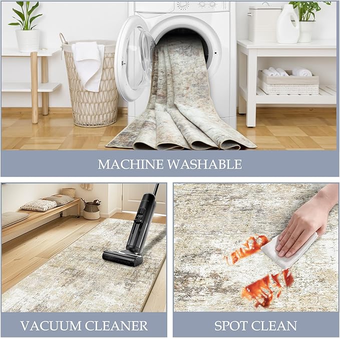 - Tides Series โ Effortless style that flows with your life.This modern machine-washable non-slip rug features reinforced edges and a low-pile design that resists dirt. Its water-repellent surface makes spills easy to clean - liquids bead up for quick wiping. Simply machine wash in cold water (no bleach) to refresh. The non-slip backing keeps it securely in place. A perfect blend of function and contemporary design for active homes.
