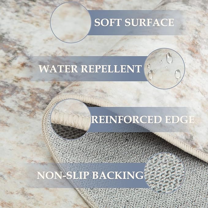 - Tides Series โ Effortless style that flows with your life.This modern machine-washable non-slip rug features reinforced edges and a low-pile design that resists dirt. Its water-repellent surface makes spills easy to clean - liquids bead up for quick wiping. Simply machine wash in cold water (no bleach) to refresh. The non-slip backing keeps it securely in place. A perfect blend of function and contemporary design for active homes.