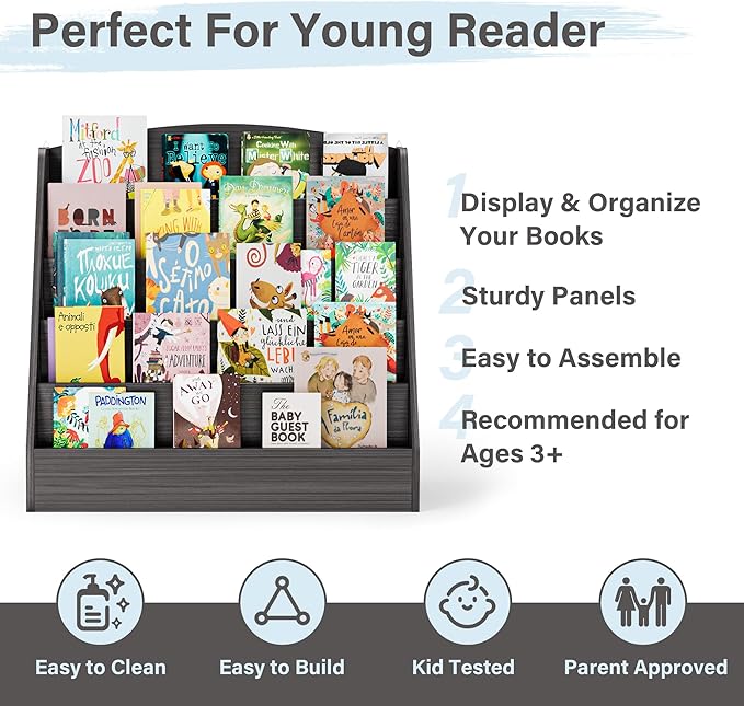 - 【EASY TO ASSEMBLE & CLEAN】- This kids bookshelf and toy storage comes with complete accessories and a user manual for quick assembly. And all boards are labeled to save your time and effort. Moreover, the smooth surface of the kids book shelf is easy to maintain and can be wiped clean with a damp cloth.🧹🎉