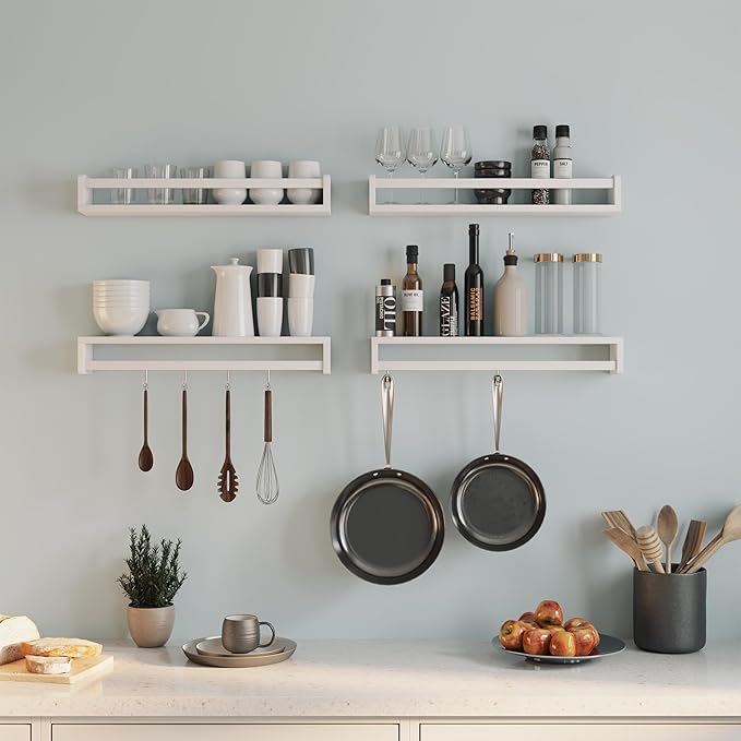 - [Versatile Nursery Shelves] - Heimlove floating shelves offer two installation options, allowing you to mount them either upwards or downwards, effortlessly adapt them to fit any space or aesthetic.They are perfect as a chic bookshelf for a nursery, a display shelf for the living room, or a spice rack for the kitchen.