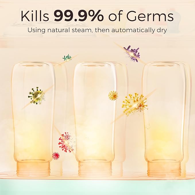 - Designed with a fully automatic operation and LED countdown display, bottle sterilizer is easy to use and ensures precise and safe sterilization. Its spacious design allows for the sterilization of up to 8 bottles at once.