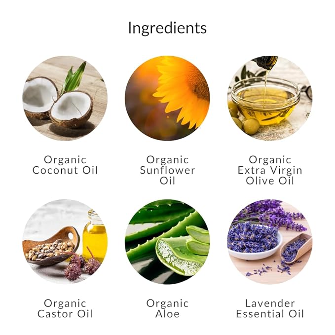 - RICH IN ORGANIC OILS - Contains organic sunflower, coconut, extra virgin olive, and castor oils, packed with antioxidants, vitamins, and essential fatty acids for lasting nourishment.