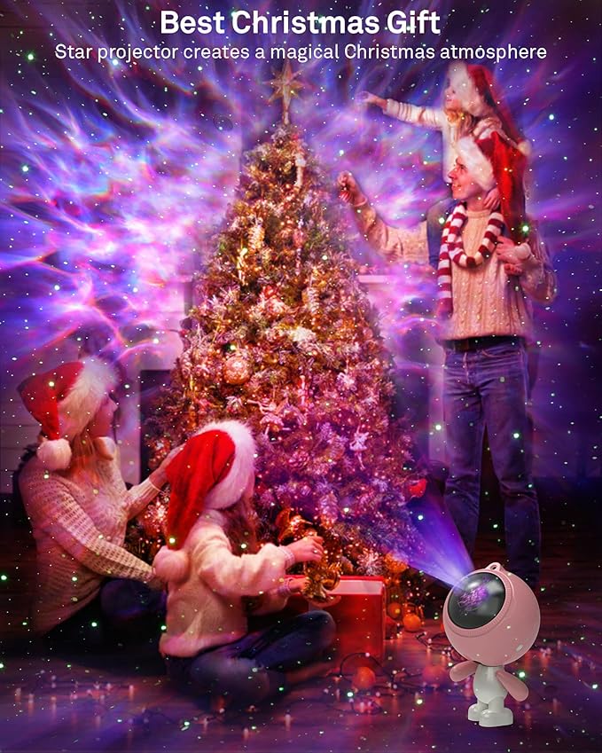 - Astronaut Galaxy Projector - The cute pink star projector illuminates your space with 10 stunning and soothing lighting effects. Transforms any room into a breathtaking celestial wonderland, casting dazzling galaxies and twinkling stars onto walls and ceilings, such as bedroom, living room, kid's room, nurseries, game room. Make your cozy space more special and charming.