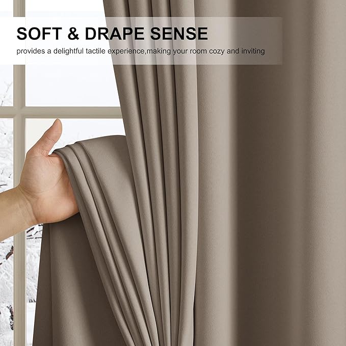 NICETOWN Grommet Plylux Blackout Curtains 95 Inches Long 2 Panels, Light Blocking Window Drapes for Living Room, Thermal Insulated, Noise Reduction, Cappuccino, 52" Wide per Panel