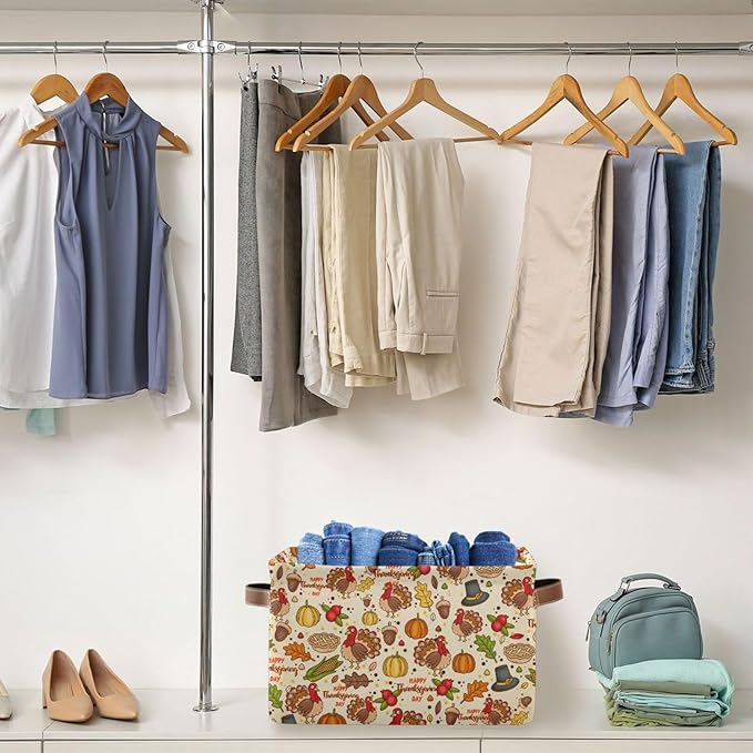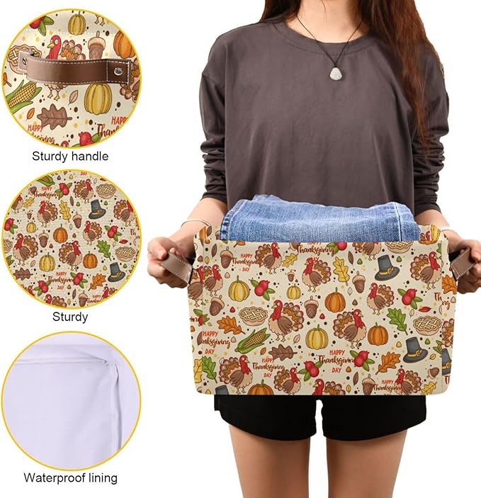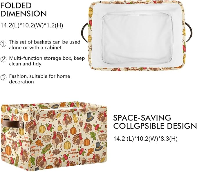 Storage Basket Thanksgiving Day Pumpkins Cube Storage Bins Organizer Bag Collapsible Closet Shelf Baskets with handle for Baby Cloth Pet Toy Book 14.2×10.2×8.3 IN