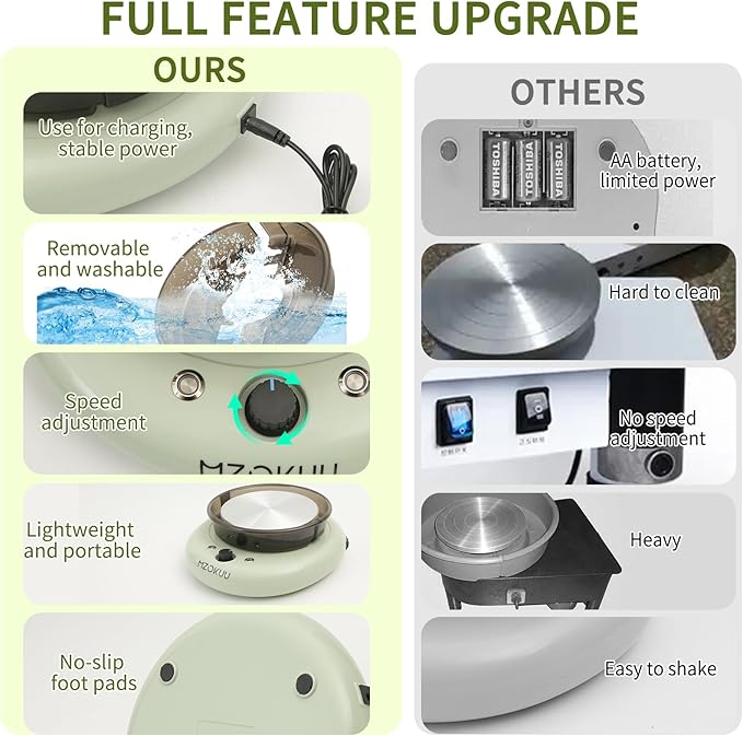 - Perfect Gift for Young Creators: Compact and portable, this kids pottery wheel kit is ideal for home or studio use. Whether it’s for a birthday, or christmas, it’s the perfect gift to inspire creativity and hands-on learning in kids.