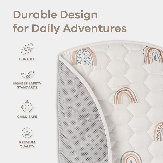 - Quilted for Extra Padding: This thick baby play mat comes with a quilted top providing added cushioning, making it more comfortable for your child to roll, crawl, and play on the mat.