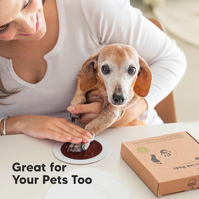 2-Pack Round Inkless Baby Hand and Footprint Kit - Mess Free Ink Pad for Newborn Keepsake, Dog Nose & Paw Print Kit, Clean Touch Ink Pad for Baby Hand & Footprints, Ideal New Mom Gifts (Auburn)
