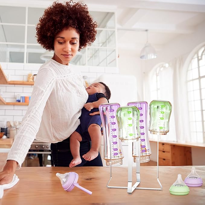 - 【Anti - Slip Bottom】: The stainless steel baby bottle drying rack is equipped with silicone pads on all four sides of its bottom. These pads effectively prevent the drainer from slipping and tipping over, ensuring reliable stability and keeping it firmly in place on different types of countertops.