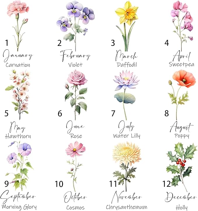 - Elegant Birth Month Mug: Each mug features the birth month flowers and names adding a beautiful botanical touch personalized for each individual.