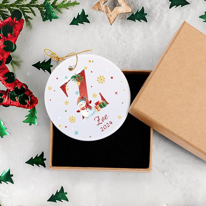 - 26 LETTER NAME ORNAMENT: Celebrate the holidays with a personalized ceramic ornament featuring a letter christmas ornaments design. This ceramic porcelain 2.87" diameter ornament is customized with an initial, making it an ideal 2025 name ornament or your collection. Includes a gold ribbon and gift box for easy gifting. Perfect for initial ornaments for christmas tree, adding a personalized touch to your festive decor.