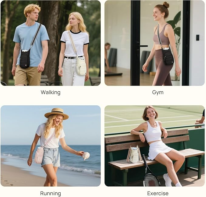 - Multiple Pockets: Water bottle carrier bag come with phone pocket for cellphone under 6.7". Front zipper pocket and inner card slots can place small items like your cards or change. Two side pocket can be used to store items you need to grab quickly, such as headphones. The bag also comes with a lanyard for hanging keys and more